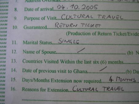 Also habe ich in Tema angerufen, um mir für den nächsten Vormittag frei zu nehmen. Noch einmal überprüft, ob ich eh alles dabei habe (Pass, Passfotos, ausgefüllter Antrag, Ticketkopie, und 100.000 Cedis). Auf ein neues.