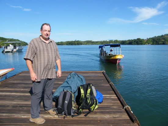 Heute nun war ein wirklich total spannender Tag. Der Wecker ging um 06:30 Uhr und wir waren pünktlich halb acht beim Frühstück. Heute hat es auch überhaupt nicht mehr genervt, dass die Bedienung ewig für das Frühstück gebraucht hat. So langsam verfallen wir dem Rhythmus dieses Landes. Es hat auch mittlerweile aufgehört zu regnen!!! Also noch schnell die restlichen Klamotten in den Rucksack, bezahlen und los... so hatten wir gedacht. Die junge Frau wollte aber meine Kreditkarte nicht haben, nur bares. Obwohl die Buchung des Hotels nur über Kreditkarte ging ... ??????? Egal, wir also bares auf den Tisch gelegt und dabei gesehen wie unser Wassertaxi ablegte. Also ein neues bestellt ... 15 Minuten Boot gefahren ... am Hafen wartete schon ein Collectivo ( sone Art Sameltaxi und eigentlich sehr günstig ) mit dem ging es zum Hiconcito Exit direkt auf der Panamerikana. Nach nur ca. 1 Stunde Wartezeit kam dann auch prompt der Bus nach Santiago ( Fahrtzeit 2,5 Stunden). Dann in den nächsten Bus nach Sona ( Fahrtzeit ca. 1 Stunde ). In Sona haben wir den Bus nach Santa Catalina verpasst. Der nächste ging erst 4 Stunden später, also haben wir ein Taxi gechartert. War bequemer und dafür auch unendlich teurer. Gegen 15:00 Uhr waren wir in Santa Catalina. Eben eingecheckt in Rolo`s Cabin, kurz an der Tauchbasis vorbei und bescheid gesagt, dass wir da sind ( wir wussten ja nicht ob und wann wir hier ankommen). Schnell an einer Beachbar was zu essen eingeworfen und zurück zum Diveshop. Nach kurzer Überlegung haben wir vorentschlossen wahrscheinlich nur 2 Tage hier zu bleiben, also müssen wir morgen tauchen gehen und fertig. Die Tauchbasis heisst Coiba Dive Center ... und passt hier gut her --- grins. Plötzlich standen 2 Engländer in der Basis, die hatten wir auf Bastimentos kennengelernt. Die haben bei 2 Tauchgängen 3 Walhaie gesehen ... Gaubt mir ... wir sind heiss auf diese Monster. Mal sehen, die Tauchbasis sagt uns morgen früh Bescheid, wohin es geht. Danach war Ortsbesichtigung angesagt ... also ... eigentlich braucht das hier auch kein Mensch. Dieses Nest ist ein Surferparadies... aha ... und tauchen und fischen geht hier auch. Nun denn ... die Besichtigung war jedenfalls nach ca. 20 Minuten vorbei. Noch schnell Wasser gekauft und weil es dunkel wurde gab es auch gleich noch Abendbrot. Allerdings das war vom feinsten ... lecker wie sau und mit very viel Gemüse ... hmmmmmm . Jetzt ist es 20:00 Uhr und wir liegen wieder in der Gruft, der Tag hat ein bischen geschlaucht.
