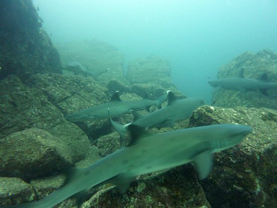 Ein Tag wie jeder andere ... nur das es heute nach Coiba gehen sollte, dem legendären Tauchgebiet Panama`s. Aber der Reihe nach. Wir haben tatsächlich eine Art Restaurant gefunden, die morgens auch Frühstück anbieten und zwar ab 06:30 Uhr. Gegen 7 waren wir dort und es gab das Panama Standart Frühstück. Einmal Granola mit Früchten und einmal Pancake... wie auch immer. Dann ging es zur Tauchbasis und ab dafür nach Coiba. Die beiden Schnorchler, dieeigentlich mitkommen wollten, sind nicht mehr erschienen, so hatten wir das Boot für uns allein. Der erste Spot hatte noch ein paar Korallen und seeeehhhhhrrrr viel Fisch. Etwas besonderes ist uns aber nicht vor die Maske geschwommen.. ein einzelner Weissspitzenriff Hai und noch einer ... und riesenschwärme Snapper und Barrakuda... das war echt beeindruckend. Pause wurde dann an der Rangerstation gemacht. Der Taum vom Paradies ... es gibt ihn doch. Weisser Sandstrand ... die ollen Kokospalmen ... und keine Wolke am Himmel. Unglaublich ... nach ca. 1 Stunde Oberflächenpause ging es weiter. Am 2. Tauchspot haben wir 2 Anglerfische gefunden und einen Trompetenfisch, wieder Schwärme von Snapper, Barrakuda, Moränen und anderes buntes Getier. Also die Tauchspots hier haben schon wirklich was. Der Werbespot hier heisst: alles was Du gesehen hast an Schwärmen und Grösse der Fische: verdopple es in Coiba. Und es stimmt ... wenn da so ein Schwarm Fische über dir her zieht, wird es duster über dir. Ok .. nächste Oberflächenpause schon wieder an so einem paradiesichen Strand .. und immer noch keine Wolke am Himmel. Die Frage, ob wir da nicht ein Hotel aufmachen sollten, wurde abgelehnt, da wir ja in einem Naturschutzgebiet waren ... das ist wirklich schade... lach. Nach 1 Stunde Pause ging es dann zum letzten Spot. Irgendein Felsen mitten im Meer.. unscheinbar. Aber an diesem Flesen ist wohl der Haupttreffpunkt der Walhaie hier in der Gegend. Um es kurz zu machen, wir haben leider keinen gesehen. Macht aber nix .... Aber der Reihe nach: anrödeln und rein ins Wasser ... kurz abtauchen und du siehst unter dir schon unmengen von Fisch. Bischen da rumgetaucht... leider gibt es hier so gut wie keine Korallen, dass ist hier nur Steinwüste ... allerdings im Wasser. Nach einer Weile sind wir dann um einen Steinblock herumgetaucht und dann hat zumindest dem Schreiber hier der Atem gestockt. Da lagen, ungelogen, 19 Weissspitzenriff Haie rum und haben gepennt. Wir haben uns dann ganz ruhig auf den Boden sinken lassen und haben das Getier beobachtet. Die Haie sind dann um uns rum getaucht und Ben, unser Tauchguide, hat sich direkt in deren Schlafstätte gelegt... sowas brauche ich persönblich nicht, aber es sah wirklich gut aus. Das war schon ein Hammertauchgang ... vom feinsten ( Benita heult grade rum, dass sie lieber viel mehr Schildkröten gesehen hätte ... aber das war leider nicht). Aber irgendwann ist alles mal vorbei, dann ging es zurück in die Tauchbasis nach Santa Catalina. Dort haben wir gemerkt, das wir uns ziemlich fürchterlich den Pelz verbrannt haben. Das macht sich besonders gut, wenn man am nächsten Tag wieder Rucksack tragen muss. Egal ... wir haben ja noch das gute Zeug aus Brasilien dabei ... after Sun.Zum Abendessen wollte Benita dann in das Steakhouse hier im Ort. Also auf und hin da. Wie sich rausstellte, war es kein Steakhouse sondern ein BBQ Grillhaus. Der grosse Unterschied: es gibt im Grillhouse keine Steaks ... huuuaaaaa. Schwein war auch aus, also hat Benita einen Fisch mit viel Gräten gehabt und ich hatte Pollo Brust. Nichts desto trotz muss man sagen, das Essen war nicht zu viel, aber dafür wirklich lecker... Jetzt ist es halb 9 und wir liegen in der Gruft. Schnell noch Foto´s raussuchen und dann sind die Augen zu. Morgen früh müssen wir wieder früh raus, der einzige Bus am Vormittag fährt gegen 8 Uhr.