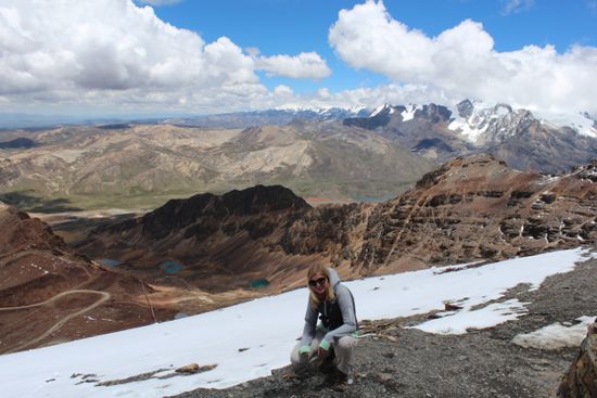 Nach ein paar erholsamen Tagen am Titicacasee geht es weiter nach La Paz, in die höchste Hauptstadt Südamerikas. Eigentlich ist Sucre ja die Hauptstadt von Bolivien, aber La Paz zählt als das wirtschaftliche Zentrum des Landes. Und Sucre ist im Übrigen noch höher - schnauf!! Hier braucht man wirklich ein Sauerstoffzelt und kalt ist es nachts wie verrückt, wobei man tagsüber aufpassen muss, dass man sich keinen Sonnenbrand holt von der Höhensonne. Der erste Eindruck von La Paz ist nicht so berauschend, es ist alles ziemlich heruntergekommen hier. Abends bucht Deniz noch ein paar Ausflüge und am nächsten Tag steht so das Luna Valley auf dem Programm, denke ich zumindest. So bin ich mit Sandalen unterwegs und wundere mich, dass wir plötzlich auf einem 5400 Meter hohen Berg sind, auf dem Schnee liegt. Dort müssen wir noch 300 Meter zu Fuß bis nach oben kraxeln, was eine kleine Ewigkeit dauert, weil man sowas von aus der Puste kommt in dieser Höhe. Früher war der Berg Chacaltaya mal das höchste Skigebiet der Welt, aber seit einigen Jahren liegt nicht mehr genug Schnee. Trotzdem lag noch genug Schnee, um ordentlich meine Sandalen zu füllen...im Luna Valley war es dann zum Glück wärmer Leider war das ein sehr teurer Ausflug, weil hinterher Deniz' ipod weg ist, als wir nochmal bei der Busfirma anrufen, haben die natürlich nichts gefunden...