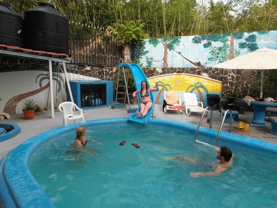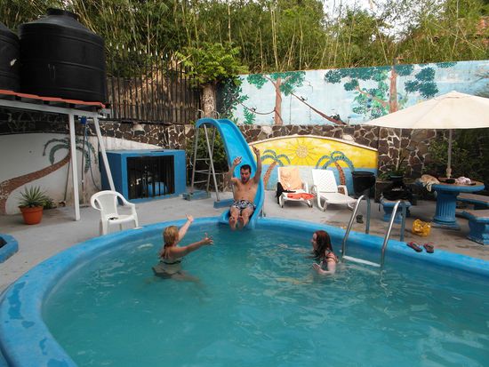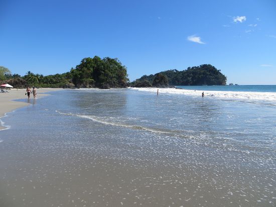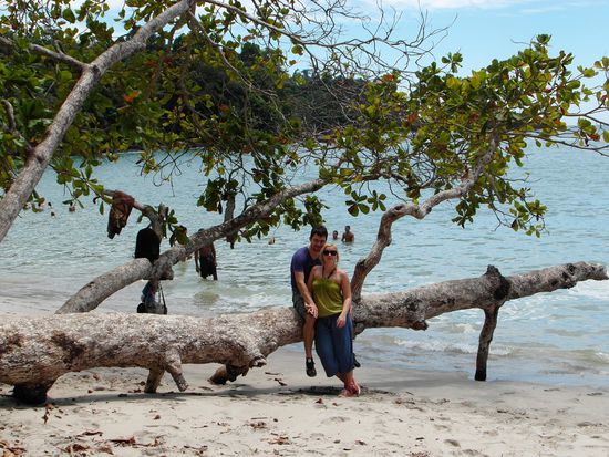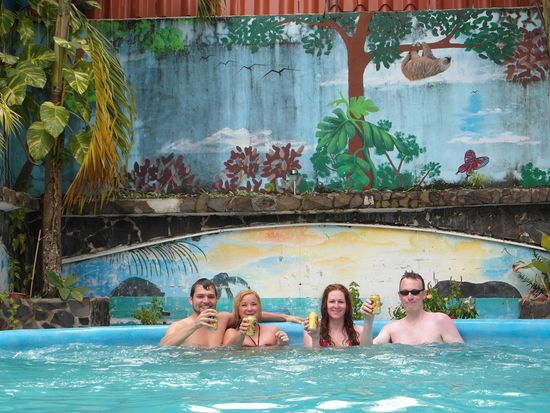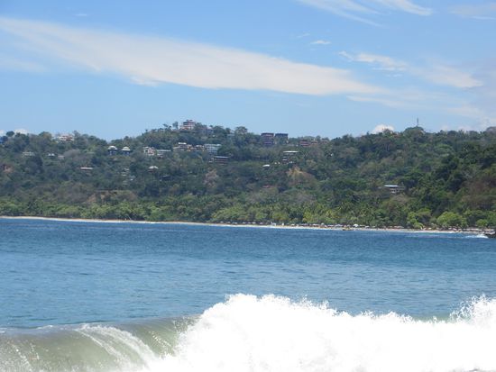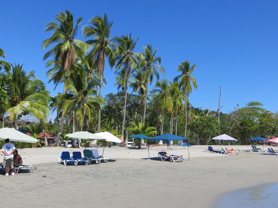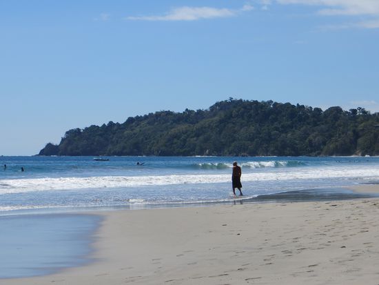 In Manuel Antonio erst einmal ein Klima-Schock. Hier sind es über 30 Grad (in San José waren es keine 20) Uns ist heiß! Wir suchen unser Hotel Villa Prats, dass sich in mitten von Manuel Antonio befindet, beziehen unsere Zimmer und kühlen uns im hoteleigenen Pool ab. Anschließend gehen wir zum Strand. Hier kommt zum ersten Mal richtiges Urlaubsgefühl auf. Wir buchen uns beim "Gorillaman" 4 Liegen (Eigentlich will er 30$ haben, aber Caro handelt ihn auf 20$ runter), baden im Pazifik und in der Sonne und lassen es uns richtig gut gehen. -Pura Vida.
