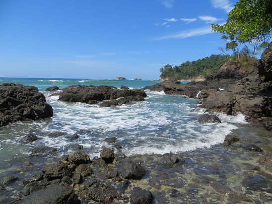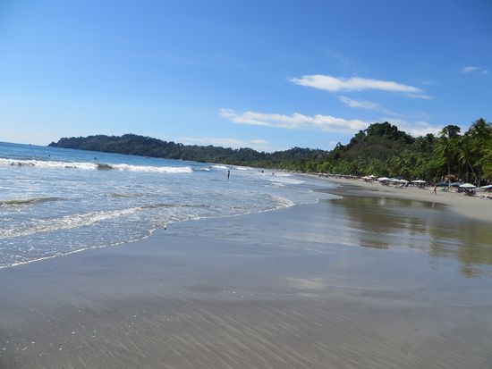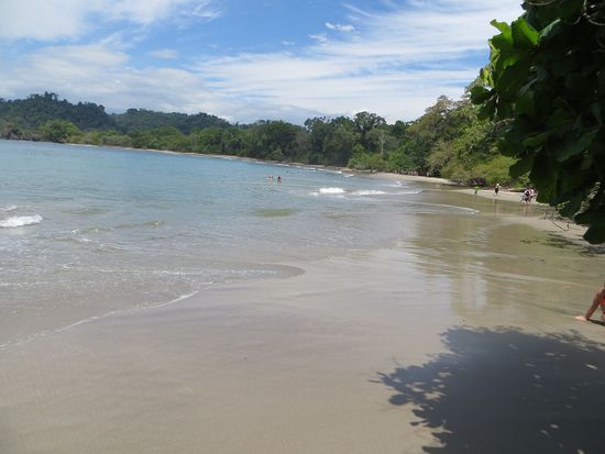Wir frühstücken um 7 Uhr im super schönen Restaurant des Hostels Costa Linda. Hier gibt es ein tolles Frühstück für 2000 Colónes (ca. 3 Euro) mit Rührei, Gallo Pinto (typischer costaricanischer Bohenenreis), sehr viel frischem Obst, Pancakes und Kaffee so viel man mag. Selbst die Einheimischen frühstücken hier, denn das Preis - Leistungsverhältnis ist wirklich unschlagbar. Gut gestärkt geht es in den Nationalpark. Eintritt kostet 10$ pro Person, man will uns noch einen Guide andrehen, aber wir wollen es erst einmal ohne Führer versuchen. Mit einer Karte bestückt wandern wir los und können erst einmal keine Tiere entdecken. Langsam macht sich Enttäuschung breit, wo sind denn die Kapuzineräffchen, Brüllaffen, Faultiere, Warane, Waschbären und Co?