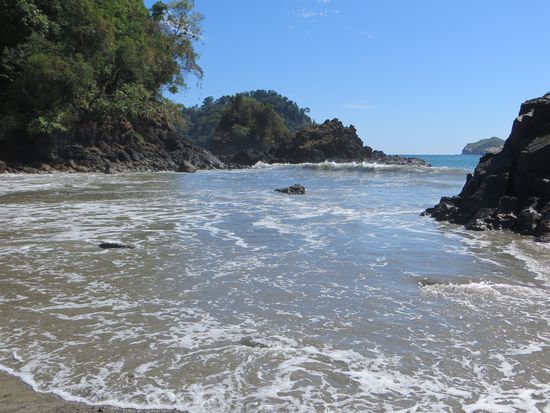 Wir wandern zu einem Aussichtspunkt, der zwar einen steilen Aufstieg erfordert, uns aber mit einem wundervollen Ausblick auf den Pazifik entlohnt. Total erschöpft suchen wir wieder den Abstieg und eine Abkühlung im Meer an einer relativ einsamen Bucht.