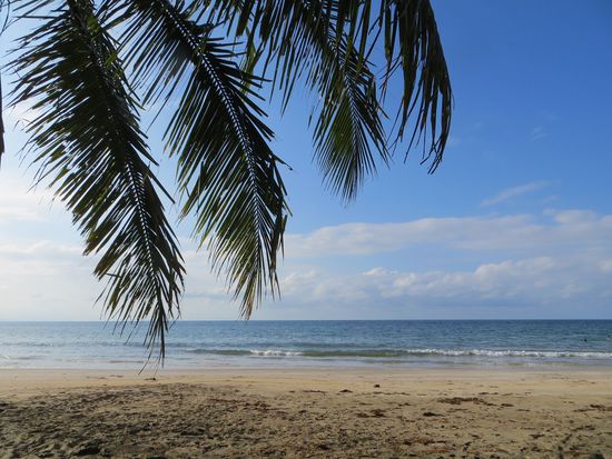 Der Strand ist ein Traum, feinsandig und von Palmen umringt. Das Meer hat (fast zu warme) 25 Grad, sobald man ein paar Meter raus schwimmt, beginnen unzählige Korallenriffe, an denen man stundenlang schnorcheln kann. Wir gehen täglich zum Strand, baden im Meer, schnorcheln oder beobachten auf unserer Terrasse Tiere. Zum Abschluss unserer wunderbaren Reise also Erholung pur.