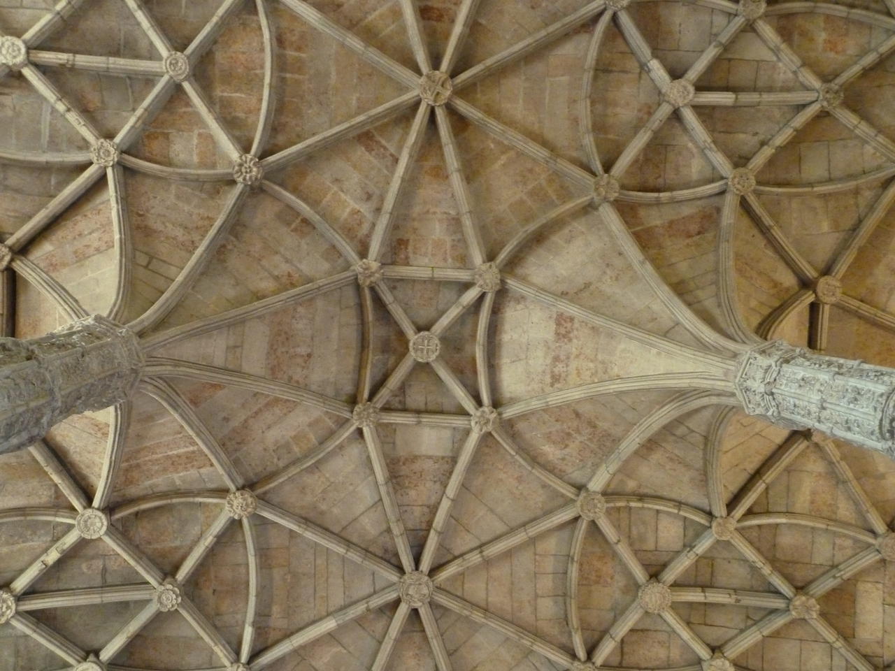 Über die vier durch ihre feine Ornamentik schmächtig wirkenden Säulen im Hauptschiff und zwei etwas stärkere Vierungssäulen erstreckt sich ein gotisches Netzgewölbe.
