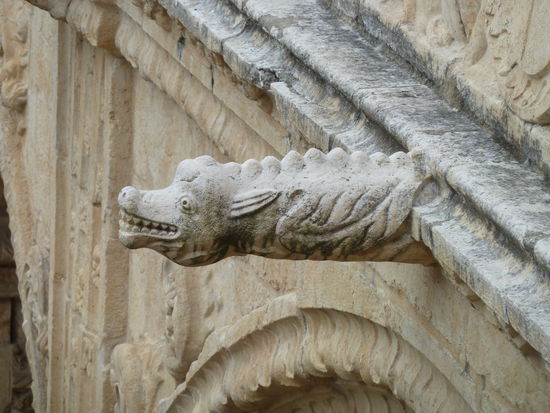 Der achteckige Kuppelturm über dem Westportal wirkt durch die Verzierungen und die Weiterführung der acht Eckpfeiler in Spitztürme nicht so massiv.