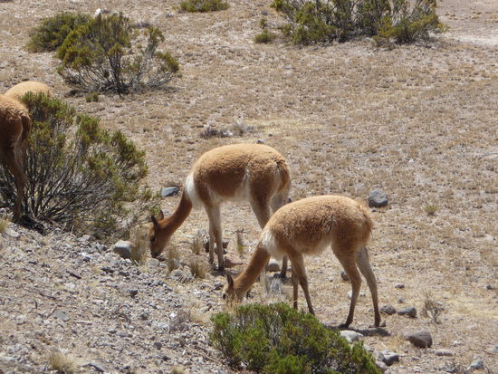 Nach dem ich die letzten Tage in der Kolonialstadt Arequipa gut verbracht habe auf immerhin schon 2000 m geht es heute endgültig in die Anden und damit auf über 5000 m. Erstes Ziel für mich für die nächsten 2 Tage wird der Colca Canyon sein der zu den schönsten Natursehenswürdigkeiten von Peru gehört. Die Schlucht des Canyons ist noch gewaltiger und tiefer als die des Grand Canyon in den USA. Während der Fahrt habe ich Gelegheit die sich immer wieder veränderne Landschaft zu bestaunen und auch ersten Kontakt mit den Kamelen Südamerikas aufzunehmen. Die in freier Wildbahn lebenden Lamas, Vikunjas oder Vikunas, Alpacas und die Guanacos haben Ihre Heimat in Südamerika im Hochland der Anden meist in über 3000 m Höhe. Die Tiere werden vor allem wegen Ihrer Wolle geschätzt wobei die der Vikunjas mit Abstand am wertvollsten ist . Sie ist selten und sehr teuer so das ein Pullover aus Vikunja Wolle schon mal deutlich über 3000 Euro kosten kann.