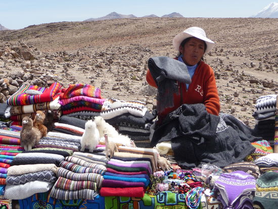 Überall im Hochland haben Frauen Tücher, Decken, Mützen,Pullover und andere Dinge aus Wolle im Angebot aber ich bin leider nicht auf der Suche nach solchen Artikeln.