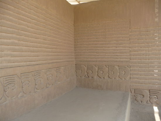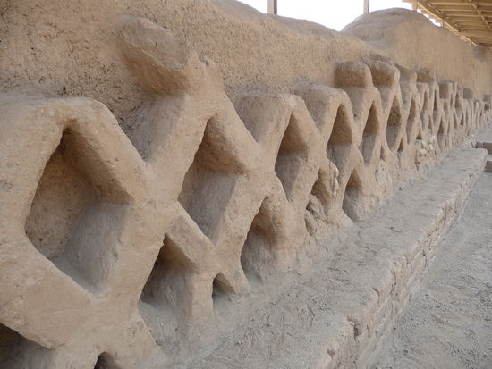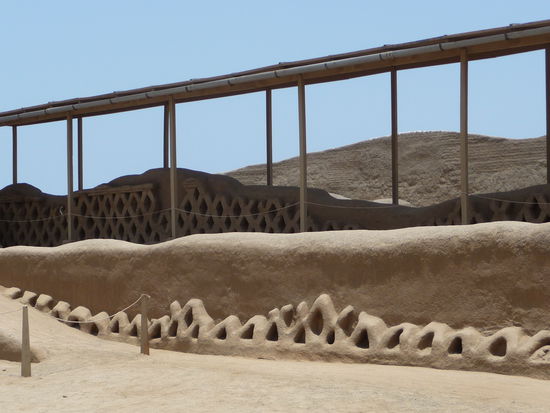Während ich mich heute morgen mit der Moche Kultur beschäftigte und sehr beeindruckt war ging es gegen Mittag auf die andere Seite von Trujillo in die ehemalige Hauptstadt der Chimu nach Chan Chan. Die Chimu waren das Nachfolgevolk der Mochica die zwischen 900 und 1500 n. Chr. die Küste Nord Perus beherrschten. Chan Chan hatte eine Ausdehnung zwischen 20 und 30 qkm. Während ihrer Blütezeit im 14. Jh. lebten dort ca. 50000 bis 80000 Einwohner. Es war die größte Stadt Südamerikas und eine der größten der Welt.Obwohl auch hier in den letzten Jahrhunderten viel verloren gegangen ist vor allem wegen Umwelt und Wettereinflüßen gibt es bis heute keine größere Stadtanlage die nur aus Lehmziegeln erbaut wurde. Die Städtebaukunst in Peru hatte mit Chan Chan ihren Höhepunkt erreicht. Man fand dort unermessliche Gold,Silber und Keramikschätze die zum Teil in den Museen in Lima zu sehen sind. Die Stadt wurde später ohne größere militärische Gewalt von den Inkas eingenommen und verlor danach an Bedeutung. Seit 1986 gehört Chan Chan zum UNESCO WELTKULTURERBE. Eintritt 10 Soles = 2,94 Euro. Ich hatte das gesamte Gelände fast für mich alleine was natürlich toll war aber auf genügend Sonnenschutz sollte man unbedingt achten.