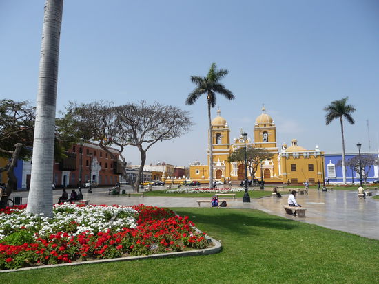 Nach der Besichtigung von Chan Chan fuhr ich am Nachmittag wieder zurück nach Trujillo und genoß noch einige Zeit die Sonne in der Altstadt. Nachdem die Inkas das Chimu Reich erobert hatten wurde die Stadt Trujillo 1535 zu Ehren der spanischen Geburtstadt von Franciso Pizarros gegründet und war der Sitz vieler Adliger und zahlreicher Vizekönige des spanischen Kolonialreiches. Aus dieser Zeit sind auch noch heute prachtvolle Häuser,Balkone und Innenhöfe erhalten. Die Stadt mit Ihren 750000 Einwohnern ist die wichtigste und größte in Nord Peru und lebt vor allem von Steinkohle,Kupfer,Zucker,Fischfang und immer mehr auch vom Tourismus der hier nicht zuletzt als Zentrum der alten Moche und Chimu Kultur eine große Bedeutung hat.1820 wurde die Unabhängigkeit Perus zuerst in Trujillo verkündet.