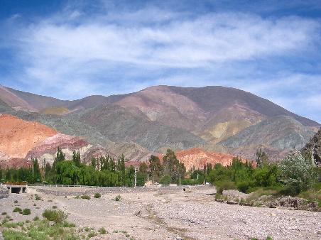 Purmamarca...ein kleines Andendoerfchen mit vielleicht 250 Einwohnern.. dennoch bleiben die Touristenbusse hier stehen, da es hier den Berg der 7 Farben gibt..Je nach Sonneneinstrahlung glaenzt der Berg in unterschiedlichen Farben..