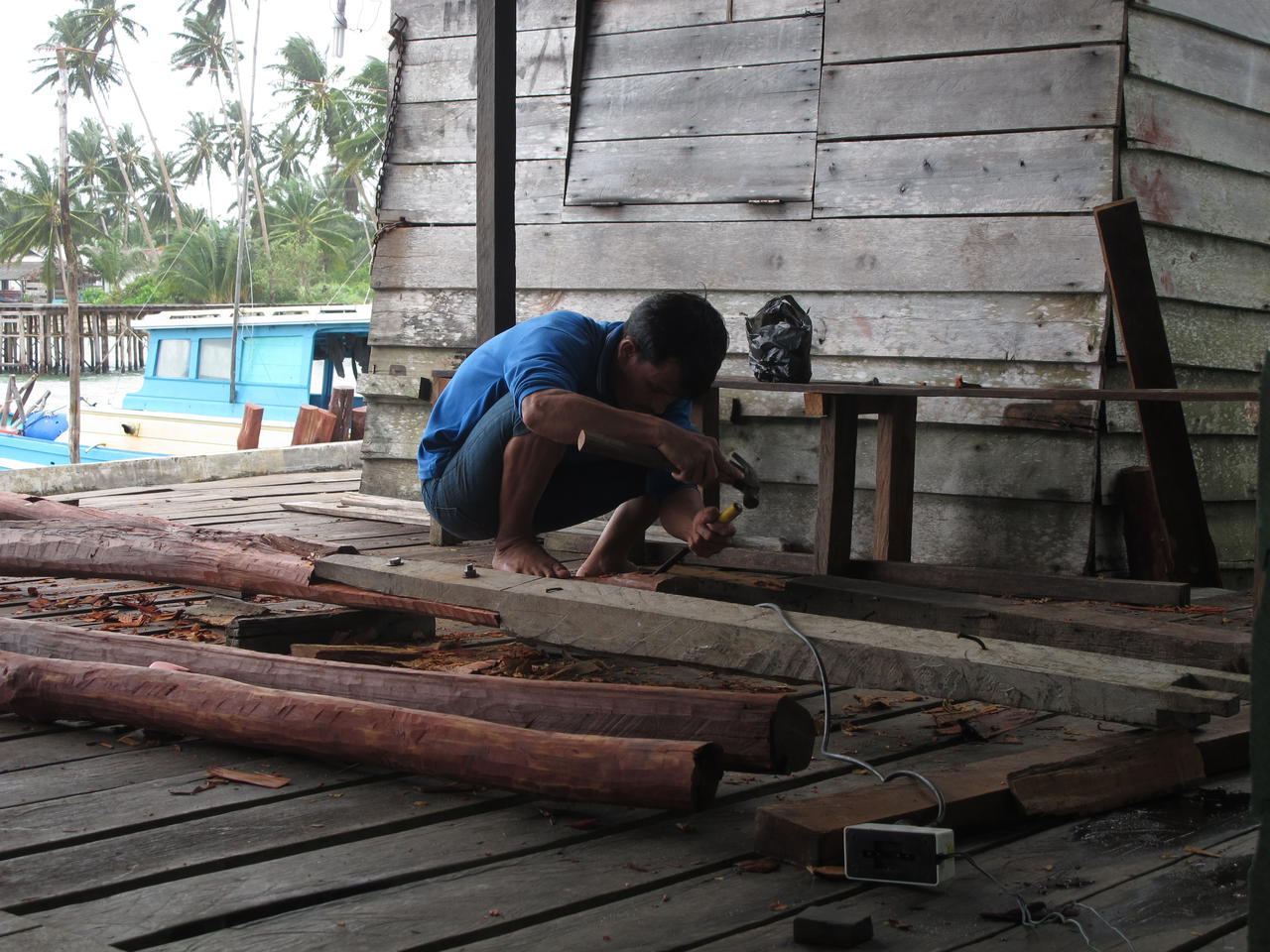 Im Hafen finden wir dann zwei Fischer, die bereit wären mich noch am selben Tag nach Senoa zu bringen. Doch es wird nicht so einfach, wie ich es mir gewünscht hatte. Sie sagen, dass der Wind zu stark ist. Wegen der hohen Wellen können sie sich der Insel nur bis auf 10m nähern. Dann müsste ich ins Wasser springen und den Rest schwimmen. Das Schwimmen ist nicht das Problem, nur mein Rucksack, der 10kg wiegt. Was das ganze Unterfangen jedoch vielmehr gefährdet, ist das Wetter der kommenden Tage. Die Fischer sagen, dass morgen das Wetter zu schlecht sein könnte, um mich abzuholen und ich müsste wahrscheinlich einen weiteren Tag dort warten. Aber selbst dann können sie mir nichts Versprechen. Notfalls müsste ich bis zu einer Woche dort auf der Insel warten! Das Risiko ist mir zu groß. Zwei Tage wären okay, ich habe ausreichend Trinkwasser und Essen, dann bräuchte ich aber die Garantie, dass sie mich spätestens danach abholen. Außerdem habe ich nur ein sieben Tage Visum und den Rückflug, sowie den Flug von Kuala Lumpur nach Kathmandu, bereits gebucht. Wir einigen uns auf folgende Lösung: Ich schlafe eine Nacht bei ihnen in ihrer Fischerhütte und wenn das Wetter am folgenden Tag beständig ist, bringen sie mich zur Insel und holen mich ein paar Stunden später wieder ab.