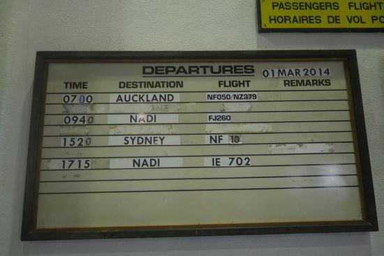Ohne langes Warten finde ich einen Bus, der mich an den Flughafen Port Vilas fährt. Der Check-in Schalter hat noch nicht geöffnet und öffnet auch erst eine halbe Stunde vor Abflug. Ich wundere mich etwas, aber das Prozedere ist hier auch schnell beendet: Die im ganzen fünf Passagiere haben ihr Gepäck schnell aufgegeben (ja, auch die zwei Hühner werden rasch als Gepäckstück eingecheckt) und sind auch schnell mitsamt ihres Handgepäcks auf die Waage gestiegen, damit der Flieger auch mit der entsprechenden Menge Kerosin befüllt werden kann, haben einen handgeschriebenen Zettel mit der Flugnummer in die Hand gedrückt bekommen (ja, den "bording pass"), die Flughafensteuer bezahlt und den nicht vorhandenen Securitycheck passiert.