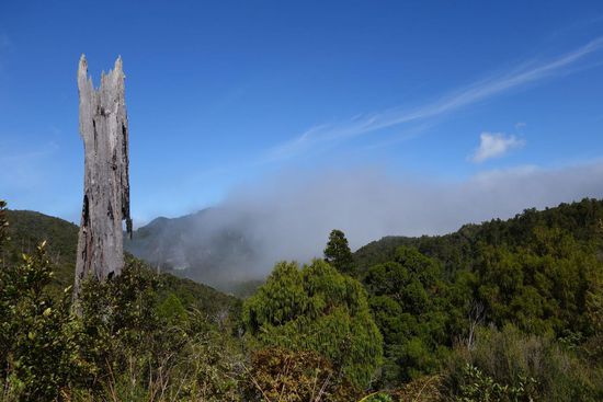Die nördliche Halbinsel der neuseeländischen Nordinsel ist besonders bekannt für ihre Karribäume - Karribäume, die dort seit Jahrhunderten stehen; ein alter Baumbestand, der aktuell jedoch gefährdet ist durch Abholzung, Klimaerwärmung und ortsfremden Pflanzensamen, die von Besuchern hierher getragen werden. Pflichtgemäß sprühen wir unsere Schuhsohlen mit den Pestiziden ein, die an jedem Eingangsweg in einen Wald hier bereitstehen. Auch bereit stehen meist Holzbohlenwege durch die Wälder um die Bäume zu schützen - löblich, da hierdurch die Baumwurzeln nicht (oder zumindest weniger) beschädigt werden als durch trampelnde Füße, aber uns geht das Wandervergnügen dadurch etwas verloren - zu glatt, zu organisiert hier.