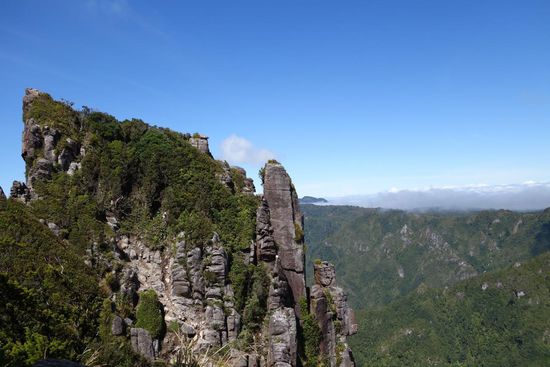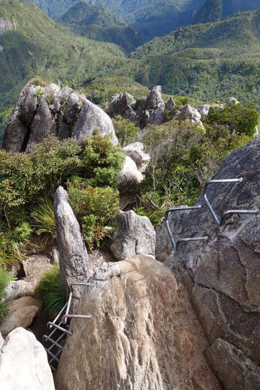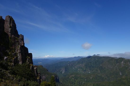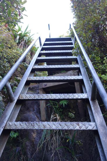 Aber wir haben sowieso schon unseren nächsten Gipfel vor Augen und machen uns auf nach Coromandel Island. Hier verbringen wir die Nacht am Eingang des Coromandel Forest Nationalparks und den nächsten Tag mit der Besteigung der Pinnacles - einer 26 Kilometer-Wanderung. Diese ist anstrengend; es ist heiß, es geht permanent bergauf und kurz vor dem Gipfel müssen unendlich erscheinende Treppenstufen überwunden und ein paar Felsen mittels Stiegen erklettert werden und zwar in der prallen Sonne, denn hier wachsen nur noch kleine Bäume. Aber diesen Gipfel haben wir dann auch für uns und die Aussicht - aber seht selbst...