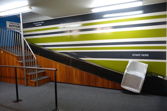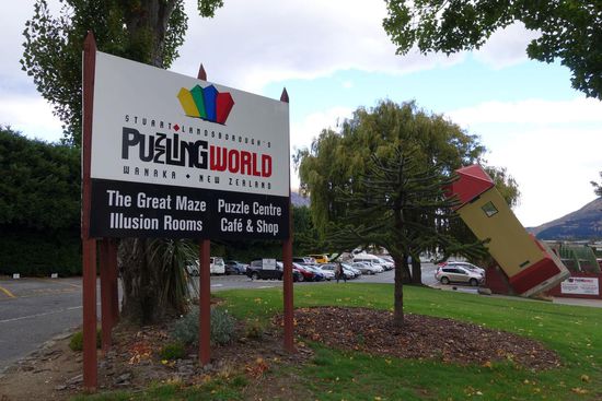 Leider verzieht sich die bei meiner morgendlichen Ankunft scheinende Sonne rasch und wird von Wolken überdeckt, die Kälte und Nässe bringen. Ich liefere meinen Rucksack im Hostel ab und begebe mich, zum Einchecken ist es eh noch zu früh, in das Museum "Puzzling World", das mit optischen Täuschungen spielt. 1973 von einem Neuseeländer gegründet und ständig vergrößert worden, ist dies wirklich unterhaltsam und ein Besuch empfehlenswert, hat man denn die Möglichkeit hierzu.