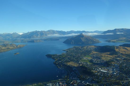 Nach dem - gemessen an seiner Größe - doch recht lebendigen und hektischen Queenstown fällt Wanaka sogleich bei Ankunft als behäbige aber gemütliche Kleinstadt auf; hier liegt der Hund begraben - allerdings auch hier in traumhafter Kulisse: Eingekesselt von nahezu 2000 Metern hohen Bergen und an einem blitzblauen Bergsee, dem Lake Wanaka.