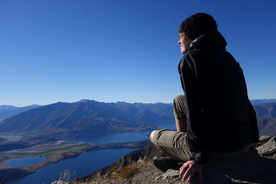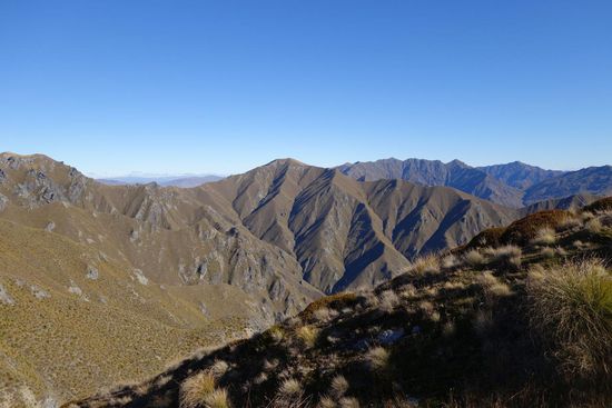 Nun, ich beginne den Aufstieg also schon später als geplant. Der Roy's Peak ist 1581 Meter hoch; Wanaka liegt auf 280 Meter - ich muss demnach 1300 Höhenmeter überwinden und 5,5 Kilometer. Der Aufstieg ist hart; kein Bäume schützen vor der Sonne, ein Ende ist nicht abzusehen und eintönig schlängelt sich eine Serpentine nach der anderen diesen Berg hoch. But wow - die Ausblicke auf die umgebenden Gipfel, bis hin zu Gletschern in weiter Ferne ist einzigartig; diese Farben sind einzigartig.