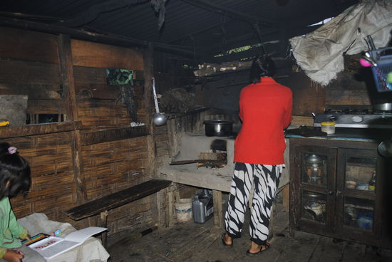 Diese Nacht verbringen wir bei einer Homestay Family. Wir sind total abgeschieden und können so eins zu eins mitbekommen wie die Leute hier so leben. Als einzigste Wärmequelle dient ein Holzofen in der Küche. Die Küche ist aber nicht im Haus integriert sondern ist in einer einfachen Holzhütte ca. 10 Meter neben dem Haus. Als das Feuer angezündet wird, wissen wir warum. Die Decke ist rabenschwarz vor Russ und die Augen brennen nach kurzer Zeit vom Qualm. Doch eine Alternative gibt es nicht, draussen ist es bitter kalt. Abgewaschen wird draussen unter freiem Himmel mit bitterkaltem Wasser, egal ob es regnet (ich baue meiner Geschirrliese einen Altar, wenn ich nach Hause komme!).