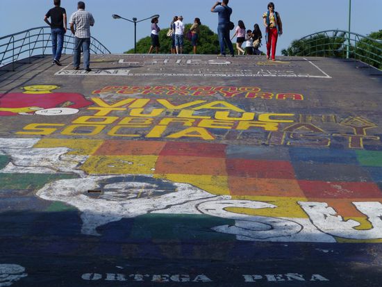 Nach einer durchgeschlafenen Nacht, einer Dusche und einem ausgiebigen Frühstück war ich bereit für das Abenteuer Großstadt. Nach dem eher verschlafenen und ruhigen gestrigen Neujahrstag präsentierte sich die Metropole von einer ganz anderen Seite: laut, hektisch und furchtbar viele Menschen. Ich fällte die wohl klügste Entscheidung für eine Besichtigung im Schnelldurchlauf. Ich reihte mich mal wieder in lange Warteschlangen ein um ein 24h Ticket für den gelben Touristen Doppeldeckerbus zu ergattern. Für 120 Pesos fahren die Busse im 20 Minutentakt durch die wichtigsten Stadtteile und an die wichtigsten Sehenswürdigkeiten. Unterwegs kann man nach Lust und Laune aussteigen und später wieder zusteigen. So kam ich ins etwas heruntergekommene Hafenviertel La Boca, in das ich mich alleine wohl nicht getraut hätte, ich habe die "Bomberia" gesehen, das Fußballstadion in dem Diego Maradona das Kicken lernte, streifte schicke Hochhaus-Viertel und habe die Atmosphäre von "la Recoleta" genossen. Ein Besuch auf dem alten Friedhof mit dem Grab Evita Peróns inklusive. War fast ein wenig wie in Paris Ein Streifzug durch die Einkaufsmeile La Florida war auch noch drin, aber das war mir dann einfach doch ZU voll. Gedränge und Geschiebe zwischen lärmenden Presslufthämmern. Ja, in dieser Stadt liegen Reichtum und tiefste Armut nah beieinander. Aber es gibt auch viele schöne Ecken und man erahnt den Glanz vergangener Zeiten. Irgendwie eine Mischung aus Europa mit südamerikanischem Ambiente. Nun hoffe ich, dass morgen früh mein Taxitransfer zum Flughafen so reibungslos klappt und ich gut in den Süden zu Svenja komme. Hasta La proxima
