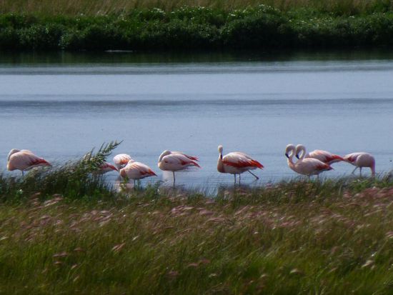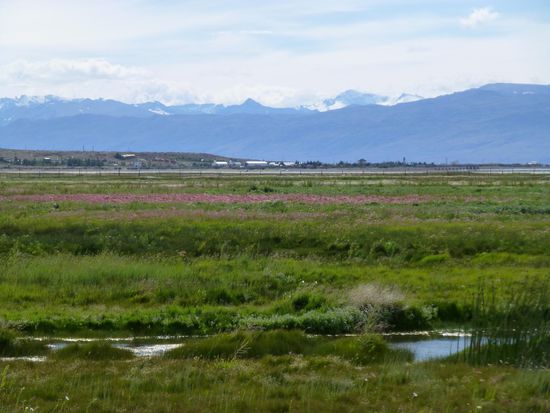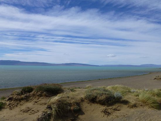Wir erkunden am Nachmittag erst einmal das kleine Städtchen und genehmigen uns zur Feier des Tages ein Mittagessen in der Sonne des Südens, die hier jedoch einen warmen Fleece-Pullover und lange Hosen erfordert. Danach geht's zur kurzen Siesta ins Hostel bevor wir nochmal losziehen und durch ein Naturschutzgebiet am Ufer des Lago Argentino wandern. Ein großes Vogelschutzgebiet mit riesigen Schwärmen rosafarbener Flamingos. Die hätte ich hier nicht erwartet. Ebenso wenig wie den starken Wind, der hier heftig um die Ecke bläst. Ich bade meine Füße im Lago, das muss schon sein. Sebastian Kneipp lässt grüßen