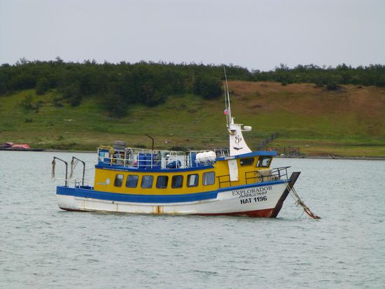 Heute morgen geht's weiter nach Puerto Natales in Chile. Dafür heißt es wieder einmal führ aufstehen, denn um 8.00 Uhr müssen wir am Busterminal sein. Gesattelt und gepackt marschieren wir kurz nach 7.30 los und der Fußweg mit Gepäck klappt ganz gut. Die Fahrtstrecke ist relativ eintönig. Jede Menge Gegend, keine Dörfer oder Städte und das über Stunden hinweg. Nur vereinzelte Farmen. Dafür sehen wir Flamingos, Nandus (das sind die südamerikanischen Laufvögel) und Guanakos. Die Wildform von Lama bzw. Alpaka. Irgendwann verändert sich die Gegend dann doch ein wenig, wird hügeliger und teilweise sogar grüner. In Rio Turbio ist die Grenzstadt nach Chile erreicht. Es ist die erste größere Stadt und sie lebt vom Kohlebergbau. Die Spuren sieht man überall - schön ist was anderes. Hier ist nun die Grenze zu Chile fast erreicht. Aber eben nur fast. Zunächst müssen wir uns am argentinischen Grenzposten "abmelden" und einen Ausreisestempel abholen. Dazu heißt es erstmal - ja was wohl - Schlange stehen. Inzwischen hat sich leider auch das Wetter verschlechtert und es regnet aus Kübeln. Nachdem die ganze Busbesatzung wieder glücklich an Bord ist geht es einige Kilometer durch "Niemandsland" zum chilenischen Grenzposten. Hier heißt es nicht nur Schlange stehen, sondern auch das ganze Gepäck muss aus dem Bus. Nichts darf hier eingeführt werden, kein frisches Obst und auch unser Sandwich haben wir kurz vorher noch vertilgt. Das Gepäck wird durchleuchtet und wir müssen uns den Einreisestempel abholen. Dann wieder alles zurück in den Bus. Die gesamte Grenzprozedur beansprucht rund 2 Stunden und wir werden mir ganz eindeutig die Vorzüge unserer europäischen Grenzen bewußt.