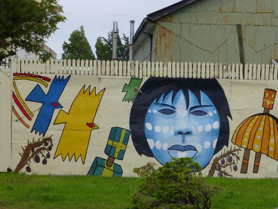 Gegen 15.30 Uhr erreichen wir schließlich Puerto Natales. Wir landen an einem Busterminal etwas außerhalb. Leider ist weit und breit kein Taxi zu sehen und es regnet immer noch. Also satteln wir unsere Rucksäcke und begeben uns auf die Suche nach unserem Hostel. Dank der einfachen Straßenführungen im Schachbrettsystem ist die Orientierung einfach und nach ca. 15 Minuten sind wir da. Svenja hat uns wieder ein Hostel in Zentrumsnähe ausgesucht. Nach dem Einchecken und einer Siesta geht's zum Einkauf ins Städtle.Wir müssen zur Bank um chilenisches Geld zu holen und ein wenig Proviant.