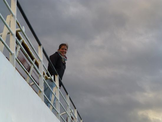 An Oberdeck kommen wir ins Gespräch mit zwei Engländerinnen und trinken zusammen eine Flasche Wein auf den Start unserer "Kreuzfahrt". Eine der beiden kommt ursprünglich von den Bermudas. Außerdem kommen wir noch ins Gespräch mit einem deutschen Paar aus Freiburg und auch das französische Paar, das mit dem Motorrad unterwegs ist und das wir bereits im Hostel in El Calafate getroffen haben, ist an Bord. Es ist schon interessant, welche Leute man auf so einer Reise kennen lernt.