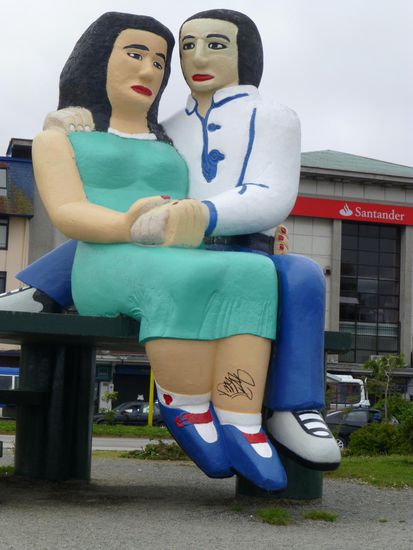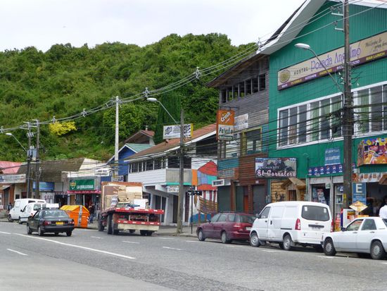 Puerto Montt wurde 1853 als deutsche Kolonie gegründet und entsprechend viele deutsche Spuren findet man hier. Der "Club Aleman" mit den Tafeln der Bundesländer (Ba-Wü lässt grüßen) , das Café Dresden oder das Restaurant Kunstmann mit deutschem Bier. Auch viele Häuser lassen deutsche Wurzeln erkennen, mit Blumen im Vorgarten, Gardinen und Carport. Alles irgendwie ein bisschen gepflegter.