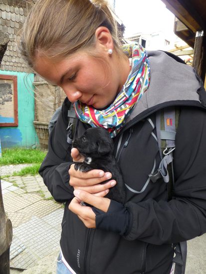 Auf unserem weiteren Weg durch die Kunsthandwerkerviertel adoptiert Svenja fast einen kleinen Welpen. Wir hätten ihn geschenkt bekommen. Angeblich wäre das süße Knäuel 6 Wochen alt, aber es hatte noch ganz trübe Augen, die bestimmt noch nicht lange geöffnet waren. Da hatten wir als Hundefreunde doch schwer zu kämpfen....