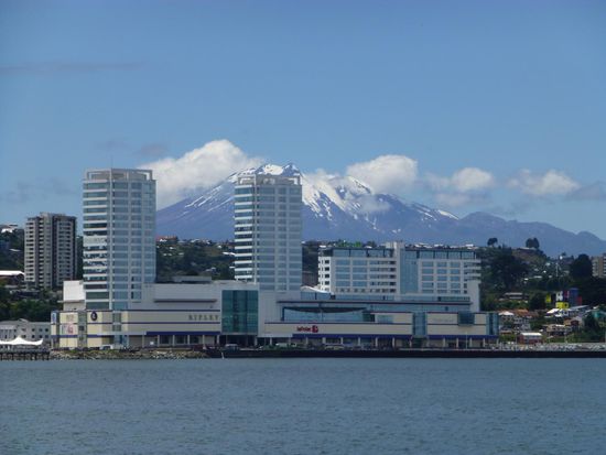 Als eine der ersten Passagiere gehen wir von Bord und werden mit dem Bus durch das Hafengelände zum Terminal gebracht. Von dort aus sind es nur wenige Schritte zum Busterminal, wo wir uns gleich eine Fahrkarte für die morgige Fahrt nach Bariloche in Argentinien kaufen. Wieder mal ist Geduld gefragt. Zwar sind wir gleich an der Reihe, doch die Dame druckt erst die falsche Karte aus, dann zieht sie andere Reisende vor und schließlich stürzt das System ab.