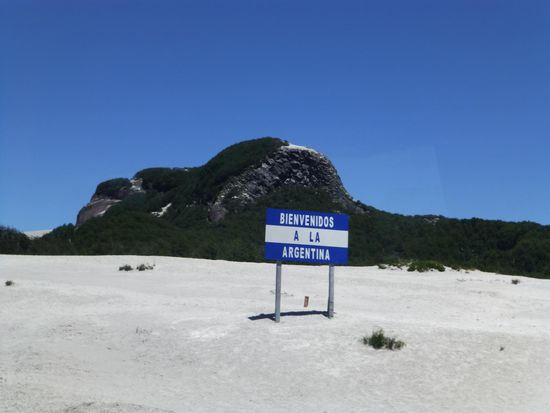 Die Fahrt verläuft recht abwechslungsreich und durch grüne Gegenden mit Weiden, Viehzucht und Obstplantagen. Nach dem "Ausstempeln" in Chile (geht erstaunlich schnell) fahren wir zunächst wieder durch "Niemandsland". Uns fallen hier in einer gigantischen Berglandschaft die vielen abgestorbenen Bäume auf. Zunächst wundern wir uns, doch dann die Erklärung: im Juni 2011 - also gar nicht so lange her - ist der Vulkan Puyehue hier ausgebrochen und hat mit seiner 9 km hohen Aschewolke den Flugverkehr zwischen Buenos Aires und Melbourne lahm gelegt. Die Aschedecke ist heute noch sichtbar und fast meint man, durch eine bizarre Mondlandschaft zu fahren.