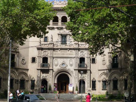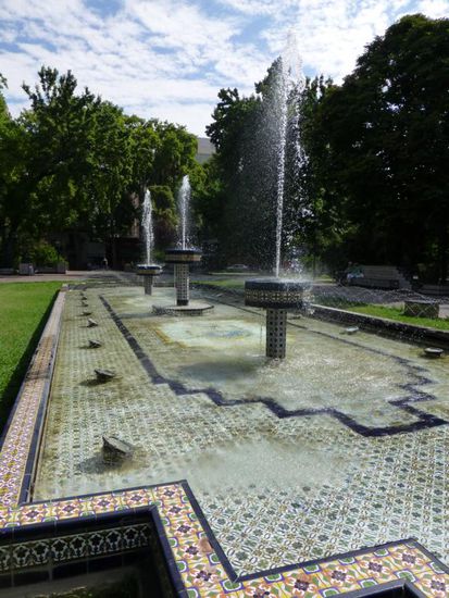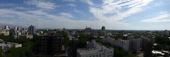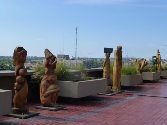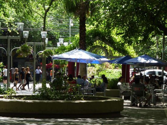 Ziel ist zunächst das Rathaus, das gestern wegen des Gewitters ausgefallen ist. Von der Dachterrasse aus, die für die Öffentlichkeit zugänglich ist, haben wir einen wirklich schönen Blick auf Mendoza. Aber leider nicht auf den "Hausberg" Aconcagua. Immerhin ist der ja auch noch 180 Kilometer entfernt.