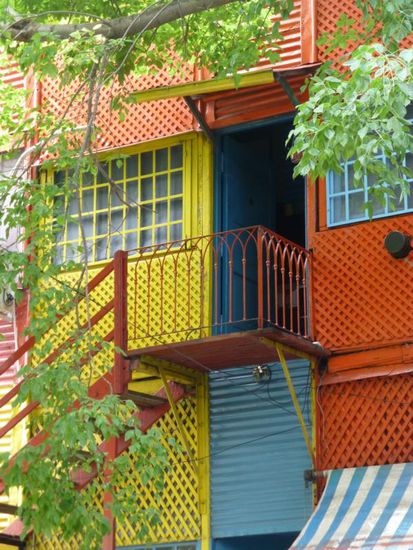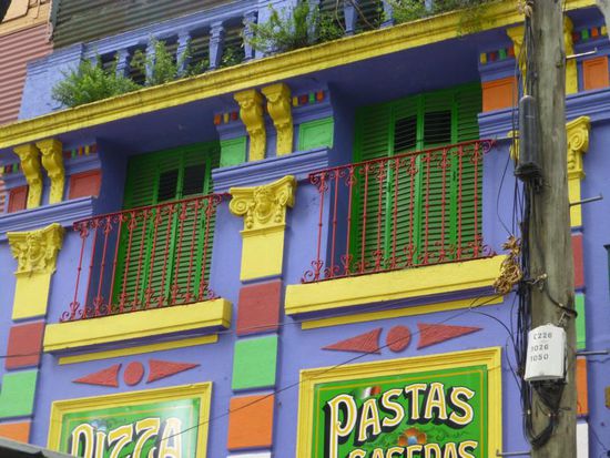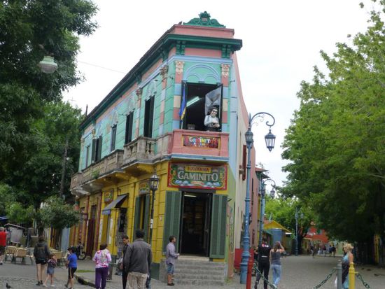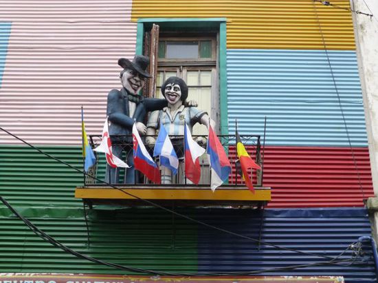 Das Viertel La Boca gilt als eines der gefährlicheren Stadtviertel, in die man sich allein oder abends besser nicht hinein wagt. Aber hier gibt es die "Caminata", einige vom Tourismus geprägten Straßenzüge mit bunten Häusern, Restaurants, Galerien und Tangovorführungen auf offener Straße. Am hellichten Tag und zu zweit dürfte uns hier nicht allzu viel passieren - außer dass wir touristisch abgezockt werden.