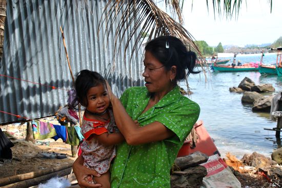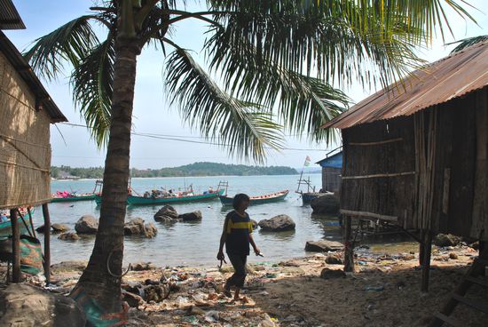 unser freund war schon öfter in dem dorf, spricht mittlerweile auch eine worte/sätze khmer und führt uns durch die hütten, die teilweise am, teilweise im wasser sich befinden. wir fallen auf - wir sind die einzigen barangs, die hier durchlaufen. außerdem lächeln kai und ich jeden an und grüßen mit "suasdey". später stellt sich heraus, dass dies völlig unüblich ist und es spricht sich wie ein lauffeuer im dorf herum, dass da so seltsame fremde durchlaufen