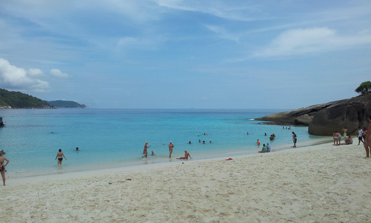 Eigentlich der Hauptgrund weswegen wir überhaupt nach Phuket gekommen sind: Die Similian Islands, weit im Westen ind der Andaman Sea, Indischer Ozean. 8 Inseln, eine schöner und kleiner als die andere! Gabs zZ zum Preis 2 für 1, also noch bessr: Tagesausflug mit dem Minibus an die Westküste nördlich v Phuket, dann knapp eineinhalb Stunden mit dem Speedboot mit über 600 PS zu den Similians. Essen und Früchte usw gabs auch, war echt die Mühe wert! Wenn nur die anderen Urlauber und Boote nicht währen, paradisisch! Macht euch selbst ein Bild von den paar Bildern unten!