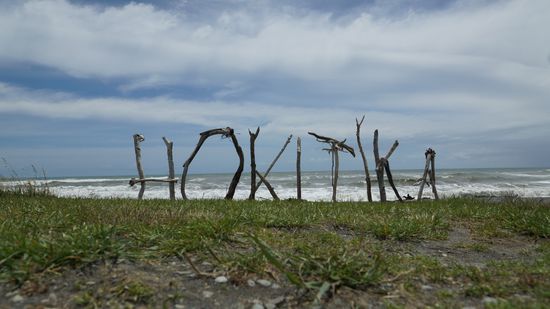 bei Greymouth am Strand: Reinhard`s "Steinmännchen"