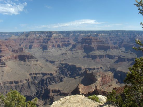 Nachteil unseres Zimmers war, dass es keine Klimaanlage hatte und wir dadurch nachts die Fenster auflassen mussten. Und als um 2 Uhr nachts Sperrstunde war wurde es auf der Strasse so laut, dass wir beide davon aufgewacht sind. Kurzentschlossen beschlossen wir zum Grand Canyon zu fahren und uns dort den Sonnenaufgang anzuschauen. Dafür dass wir gerade von einer grölenden Meute aufgeweckt wurden, eine wirklich sehr rationale Entscheidung. Also rein ins Auto und 2 Stunden Fahrt zum Grand Canyon. Dort angekommen waren die besten Plätze von Japanern belegt, wie könnte es anders sein . Kaum waren die ersten Strahlen zu sehen, waren die allerdings schon wieder weg, und wir hatten den Aussichtspunkt für uns. Nachdem wir gefrühstückt hatten, haben wir dann bis 3Uhr mittags uns den Canyon von verschiedenen Punkten angeschaut. Man kann sich die Ausmaße gar nicht vorstellen, selbst wenn man davor steht ist es schwierig. Weiter ging es zu Indianer Pueblos und danach zum Sunset Crater, einem Vulkan, der vor 1000 Jahren das letzte Mal ausgebrochen ist. Man sieht sowohl riesige Lavafelder, als auch wie die Natur sich langsam diesen Bereich wieder erschließt.