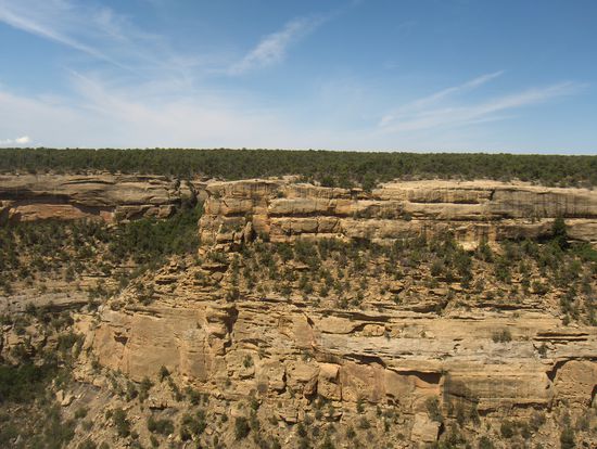 Gestern haben wir dann unseren drittletzten Nationalpark besichtigt, der definitiv auf unserem Programm steht, den Mesa Verde Park. Hierbei handelt es sich um eine Canyonlandschaft auf einem Berg (2500 Meter) mit Indianersiedlungen, die man sich ungefähr wie ein Dorf mit vielen Aussiedlerhöfen vorstellen kann. Wir hatten Karten für das "Dorf" um 10 Uhr, was sich im Nachhinein als Glücksfall herausgestellt hat. Die Rangerin meinte vor der Führung, wenn jemand höhenkrank sei solle er oben bleiben, und nicht mitgehen. Ich megastolz, mit meinen Blutdruckproblemen, dass ich nur ein leichtes komisches Gefühl im Magen hatte. Das Dorf besichtigt und danach noch ein paar Siedlungen, und dann hatte es mich voll erwischt. Da half auch kein Mittagessen und auch keine Cola. Nach 3 Stunden wurde es besser und ich konnte wieder sicheren Schrittes aus dem Auto aussteigen, und hatte nicht mehr das Gefühl gleich zu schlafen. Nach acht Stunden Besichtigung auf dem Berg, sind wir gestern im Motel zurückgewesen.