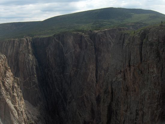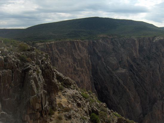 Der nächste Tag war schon der Tag, an dem wir in Copper Mountain ankommen sollten, also ein Tag vor meinem Vortrag. Begonnen hat der Tag, dass wir den Black Canyon, der quasi direkt vor unserer Haustür lag, besichtigt haben, von dem uns meine Tante noch kurz vor der Abfahrt vorgeschwärmt hatte, wir waren gespannt, und die Messlatte lag nach den letzten 3 Wochen ja hoch. Aber es war wieder beeindruckend, und dieser wiederum anders als die anderen Canyons. Der Höhepunkt dieses Parks waren weiße Granitschichten die in dem schwarzen Granit waren, so dass der Fels wie gestreift aussah.