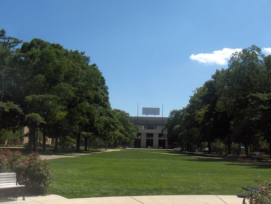 Nach 3 Tagen strammen Kulturprogramm konnten wir wieder in unserem Auto Platz nehmen und weiter Richtung Osten fahren. Die nächsten Etappen gingen immer südlich an den großen Seen entlang, was landschaftlich auch sehr reizvoll war, natürlich auch wieder der größte See....Ziel des heutigen Tages war Sandusky, wo, man ahnt es schon, dem größten Achterbahnfreizeitpark der Welt gibt. Auf dem Weg dorthin machten wir zuerst im Footballmuseum in Southbend halt, das sehr amerikanisch angelegt war, und sind danach zur University of Notre Dame gefahren, einer sehr angesehenen Uni in den USA. Dort gab es tatsächlich eine Touristeninformation für die Uni und statt einer kleinen Vitrine für Uni- Tshirts eine Verkaufsfläche von mindestens 200 qm. Und alles im Stil frühgotischer Kirchen gebaut. Das Unigelände selbst hatte dann keine so großen Gebäude mehr, die Häuser (ja richtig gelesen)die für Doktoranden zur Verfügung standen hätte ich schon gern genommen. Was halt krass war, war wie sehr Gott auf dem Kampus präsent war, und auch gelebt wurde. Die nächste Station die wir hatten waren die Amishsiedungen. Hier leben ausgewanderte Deutsche nach dem Prinzip des 18. Jahrhunderts ohne Benzin und Elektrizität. Den ersten den wir allerdings gesehen hatten, hatte einen elektrischen Rasentrimmer , und vor vielen Garagen standen auch Autos. Da in unseren Reiseführer die Öffnungszeiten für das Besucherzentrum falsch angegeben waren, konnte wir dort nur noch kurz einen Film über die Amish (mit Lautverschiedung aus dem 19. Jhd. =Ärmlich), der uns allerdings zu missionarisch angehaucht war. Die Amishoma die uns bedient hatte war dort sehr freundlich und hatte für den Film dann auch noch die Museumszeit für uns überzogen. Danach waren wir noch im Lokal am Ort Essen wo es wieder ein allyoucaneat Angebot für deutsches Essen gab-yippie Gemüse.