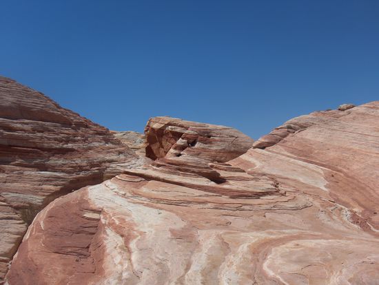 Leider hieß es nach dieser Nacht schon wieder Abschied nehmen; die gekünstelte Plastikwelt hat uns richtig gut gefallen. Das nächste Ziel unserer Reise war das Valley of Fire. Der Name beschreibt nicht nur das Aussehen des Parks, sondern auch die klimatische Situation. Da der Park 2 Stunden von Las Vegas entfernt liegt, und wir morgens auch noch unsere Koffer packen mussten, sind wir erst so gegen 10 dort angekommen. Es gab 3 Wanderwege, zu Indianerzeichnungen, einem Slot Canyon und zu einer Felsformation die the Fire Wave genannt wird. Wir wollten uns alle anschauen und so hieß es zwischen den Wanderungen immer wieder ins Visitor Center zurück und abkühlen. Die Wanderungen haben sich allerdings gelohnt auch wenn es megaanstrengend war. Danach fuhren wir weiter nach Utah, auch der Mormonenstaat genannt.