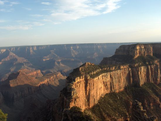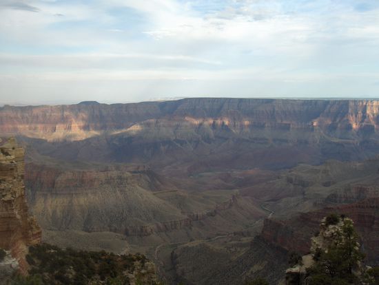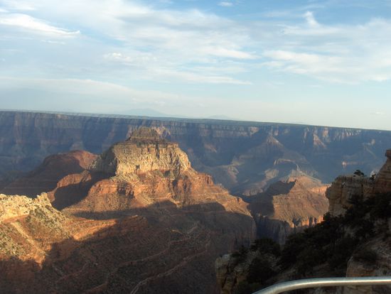 Am Grand Canyon angekommen, wurden wir als erstes vom Parkservice mit einem Golfbuggy zu unserem Ferienhäuschen gefahren (tres chic). Das Häuschen war im Stil einer Blockhütte gestaltet und sehr gemütlich. Da wir ja nun am Nordrand waren, konnten wir nun einen wunderschönen Sonnenuntergang anschauen; diesmal mit dem Vorteil, dass wir nicht um 2 Uhr aufstehen mussten und außerdem wohnten wir ja im Park.