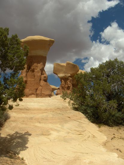 Am nächsten Morgen machte Michael eine Wanderung zu den Wasserfällen in Calf Creek und ich schaute mir die Apple Parade in Torrey an, eine Parade zum Unabhängigkeitstag, bei der alles aus dem Ort auflief, von Vereinen, Polizei, Betrieben bis zu Schulen. Warum das ganze 3 Tage später war, keine Ahnung. Mittags sind wir das erste Mal eine Allradstrecke im Capitol Reef Nationalpark gefahren. Die Allradfunktion haben wir nicht gebraucht, allerdings brauchte man ein erhöhtes Auto. Zudem sind wir durch zwei Flüsse gefahren. Angeschaut haben wir uns dabei das Cathedral Valley. Dort gibt es eine Formation Temple of the Moon und Temple of the Sun, sehr beeindruckend.