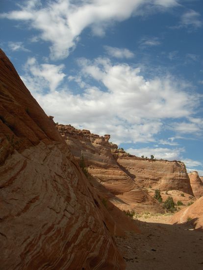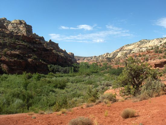 Nachdem wir zwei Tage im Bryce Canyon verbracht hatten und es mir wieder besser ging, fuhren wir weiter nach Torrey, einer Siedung die zwischen den Nationalparks Escalante und Capitol Reef liegt. Zuvor besuchten wir den Kodachrome State Park, den versteinerten Wald und Devils Garden, sowie den Zebracanyon, einen Slotcanyon ähnlich dem Antelope Canyon. In Torrey angekommen, hab ich mich gleich in das Hotel verliebt. Schöne Zimmer, super Pool und ein Deli im Haus. Bis dahin hatten wir außer Subway noch kein Deli gesehen, und ich dachte schon, dass ich das erste in New York sehen würde. Ist jetzt nur die Frage ob Subway ein Deli oder Fast Food ist . Den Rest des Tages verbrachten wir am Pool, den wir für uns hatten.