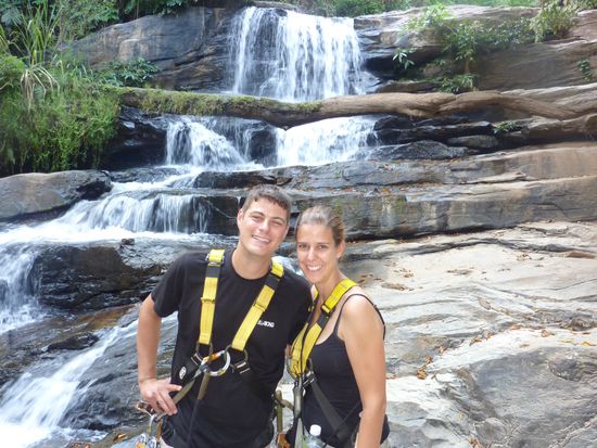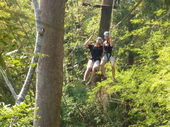 An unserem letzten Tag in Chiang Mai buchten wir noch eine "Zip-Tour". In einer Art Seilpark ging es mitten im Regenwald in schwindelerregender Höhe auf Drahtseilen von einem Baum zum Nächsten. Die rund zweistündige Tour hat wirklich sehr viel Spass gemacht und verlangte von Jasmin zum Teil einiges an Überwindung ab