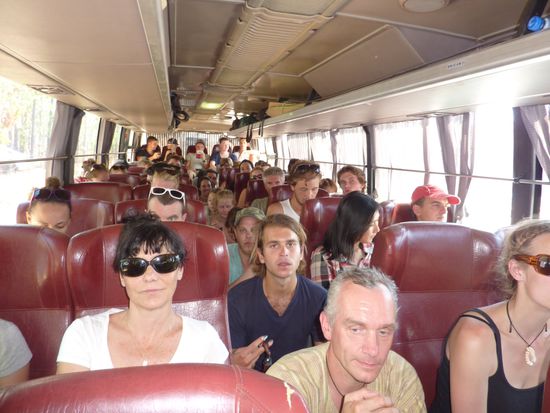 Pünktlich um 08.00 Uhr brachte uns ein Boot auf das Festland, wo ein Minibus warten sollte. Zunächst wurde aber das Visa on Arrival für Kambodscha zusammen mit 30 US-Dollar und dem Reisepass dem Busunternehmen übergeben. Ein mulmiges Gefühl bleibt natürlich bestehen, wenn man den Reisepass einer fremden Person in die Hände gibt. Das Visum selbst kostet zwar nur 25 US-Dollar, auf beiden Seiten der Grenze ist aber noch eine "Stempelgebühr" für die Zollbeamten fällig, damit das Einreisegesuch auch in passabler Zeit erledigt wird... Nachdem wir dann etwa 1.5 Stunden auf den Minibus warteten, wurden wir die 15 Minuten zur Grenze gefahren. Die Einreise sollte ja nun durch die "Stempelgebühr" kein Problem sein. Wars eigentlich auch nicht, dauerte aber trotzdem fast drei Stunden. Der Bus nach Phnom Penh wurde dann natürlich bis auf den letzten Platz gefüllt (inkl. kleiner Sitze im Gang versteht sich) und es herrschten Temperaturen um den Siedepunkt. Ganz übergekocht ist die Stimmung dann, als im TV dreimal in Folge der Gangnam-Style über den Bildschirm flimmerte. Eine etwas ältere Deutsche war nicht mehr zu halten als der Fernseher endlich ausgeschaltet wurde. Die Fahrt gestaltete sich dann doch noch ganz akzeptabel, als nach etwa einer halben Stunde sich das Problem mit den Plätzen und derTemperatur lösten. Auf dem Weg nach Phnom Penh lernten wir auch Lucie aus Paris und Lea aus Basel kennen. Sie haben sich bereit in Nordlaos kennengelernt und beabsichtigen Kambodscha in etwa genauso zu bereisen wie wir. Die weitere Fahrt verlief dann noch ganz spannend, nicht zuletzt weil der Fahrer offensichtlich mehr Freude an den Begleitpersonen als an der Strasse (bzw. den vielen Schlaglöchern) hatte. Einmal mehr habe ich es bereut, in einem Bus nicht schlafen zu können. Bestimmt hätte mein Herz nicht derart oft so hoch geschlagen. Trotz allem kamen wir nach 14 Stunden in Phnom Penh an. Die Verzögerung beschränkte sich auf drei Stunden.