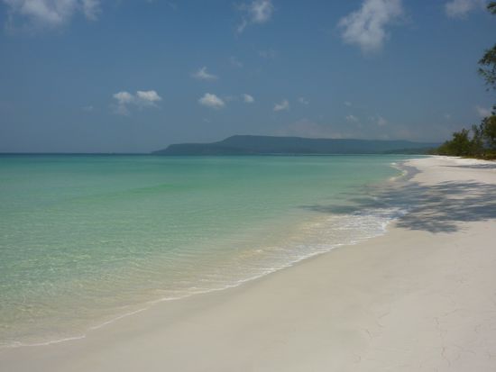 Bereits am nächsten Morgen ging es mit dem Boot auf diese etwa zwei Stunden entfernte Insel. Je näher die Insel rückte, desto faszinierender schien der lange weisse Sandstrand. Diesmal überliessen wir Lea und Jasmin die Suche nach einer Unterkunft. Bereits nach wenigen Minuten wurden sie im "Sea View Bungalow" fündig. Für 10 US-Dollar bekamen wir eine Schlafstelle mit Moskitonetz und Ventilator. Die Toilette befand sich zu unserem Nachteil direkt neben unserem Zimmer.