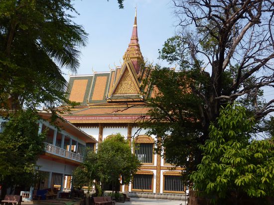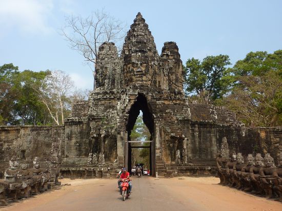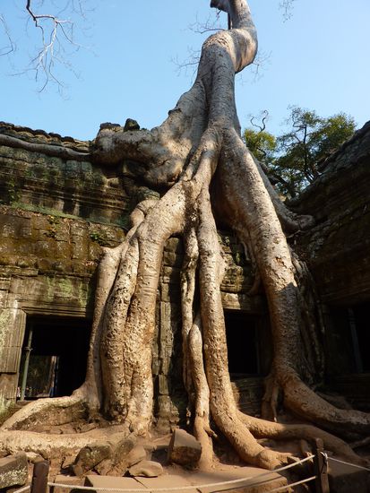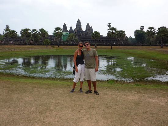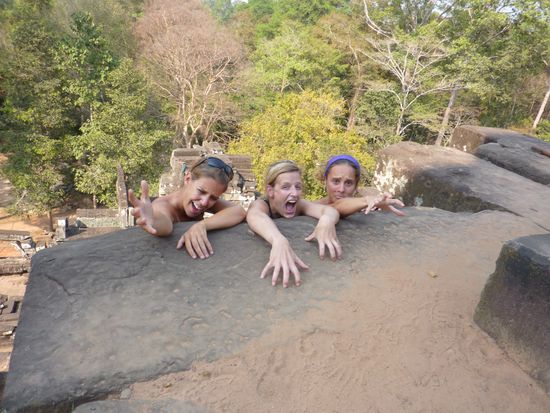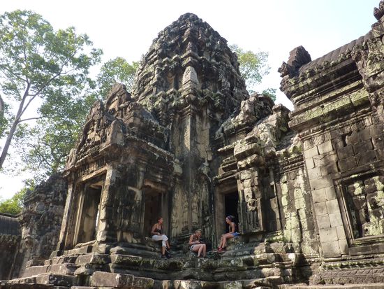 Pünktlich um 19.00 Uhr holte uns der Sleeperbus direkt vor dem Hotel ab. Dem Bus nach Pakxe konnte er zwar nicht das Wasser reichen, jedoch konnte man auch hier die Beine ausstrecken. Und so fand auch Pascal etwas Schlaf. Nach elf Stunden kamen wir in Siem Reap an und wurden auch sofort von den Leuten des Busunternehmens aufgefordert ein Tuk Tuk über sie zu buchen, da die wartenden Tuk Tuk Fahrer uns angeblich nicht am gewünschten Ort abladen werden. Pascal war jedoch überzeugt, dass wir auch auf eigene Faust ein Tuk Tuk zum gleichen Preis kriegen werden. Hat bestens funktioniert und direkt vor dem vorgebrachten Populär Guesthouse wurden wir auch ausgeladen. Dort warteten auch schon Lucie und Lea auf uns. Nach einem gemeinsamen Frühstück entschieden Pascal und ich, bereits am ersten Tag Angkor Wat zu besuchen. Die anderen zwei Mädels konnten wir jedoch nicht davon überzeugen. Somit organisierten wir uns ein Tuk Tuk Fahrer, welcher uns die nächsten beide Tage chauffieren sollte. Am ersten Tag wollten wir die kleineren Tempel und Ruinen besichtigen, und am nächsten Tag mit Lea und Lucie die grösseren und bekannteren Monumente anschauen. Dazu haben wir uns Dreitagespässe für USD 40 pro Person gekauft (Tagespässe waren für USD 20 pro Tag erhältlich). Zu Beginn war es sehr interessant, jedoch hatte es im Laufe des Tages auch immer mehr Ruinen, von welchem lediglich Steinhäufen übrig waren. Zudem machte uns die Hitze enorm zu schaffen, sodass wir vor Sonnenuntergang wieder zum Guesthouse fuhren. Am Abend konnte ich Pascal noch zu einem Coiffeurbesuch überreden. "Zufälligerweise" hatte es im gleichen Salon auch noch Fussmassagen im Angebot. Diese Gelegenheit musste ich natürlich sofort ausnutzen. Somit gingen wir beide glücklich aus dem Salon und zwar auf direktem Weg ins Bett. Am nächsten Tag war unser gebuchter Tuk Tuk Fahrer zwar nicht mehr verfügbar, jedoch haben wir einen sogar günstigeren Ersatzmann gefunden. Dieser führte uns vier zu den bekannteren und imposanten Monumente. Teilweise waren diese sogar richtig mit Bäumen durchwachsen. Diese Kulisse ist auch bekannt aus dem Film Tomb Raider und einfach unglaublich anzusehen. Doch leider verschonte uns die Sonne auch nur bis mittags, sodass wir am Nachmittag noch einzelne interessante Ruinen besuchten und uns aber anschliessend schweissüberströmt auf die Rückfahrt zum Guesthouse begaben. Unseres Erachtens reichen zwei Tage völlig aus um die wichtigsten und imposantesten Tempel zu besichtigen. Am Abend besuchten wir die Pubstreet und schlürften noch ein paar schmackhafte Cocktails. Am nächsten Tag stand ein Lazyday an, an welchem wir einen Tempel in der Stadt und Märkte besuchten, sowie die Weiterreise nach Battambang buchten. Lucie wird am nächsten Tag zurück nach Thailand reisen, um vor der Heimreise noch die Südküste zu besuchen. Somit werden wir bis auf weiteres nur noch mit Lea weiterreisen. Am Abend besuchten wir nochmals die Pubstreet und freuten uns auf den bevorstehenden FCSG-Match, welchen wir per Liveticker verfolgen wollten. Naja, leider fiel dies ja ins Wasser, da der Match aufgrund zu kalter Temperaturen abgesagt wurde. Somit begnügten wir uns mit ein paar Cocktails, um anschliessend müde ins Bett zu fallen. Morgen geht es weiter ins Städtchen Battambang, welchem wir einen geplanten zweitägigen Besuch abstatten wollen. Die Fahrzeit soll lediglich drei Stunden betragen. Siem Reap wäre bestimmt ein längeren Aufenthalt wert gewesen. Aber so schlimm es auch klingen mag, nach über 2 Monate Südostasien wird man doch etwas "Tempelmüde". Das tut der Faszination dieser Anlagen aber überhaupt keinen Abbruch. Zudem haben wir mit Angkor Wat die drei wichtigsten Monumente des Buddhismus (Borobudur in Indonesien, der Shwedagon Pagode in Myanmar und nun Angkor Wat) allesamt mit eigenen Augen gesehen. Als nächstes kommen dann vielleicht (!!) mal die christlichen Kirchen an die Reihe, aber für eine Audienz bei Papa Razinger wird es uns wohl nicht mehr reichen.
