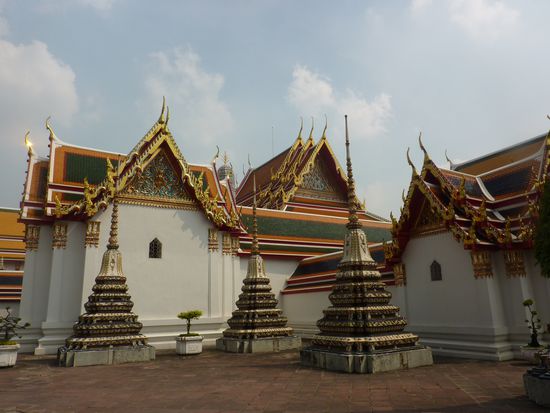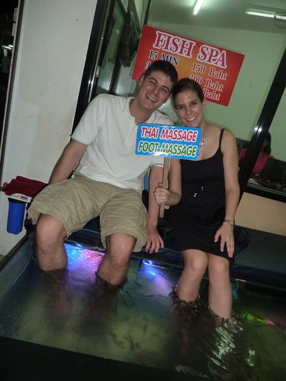 Nachdem uns der Schiedsrichter der Partie FC Basel - FC St. Gallen eine fast schlaflose Nacht bescherte, war am ersten Tag erst mal ausschlafen angesagt. Gegen Mittag begaben wir uns dann Richtung Königspalast und zum Wat Pho mit dem liegenden Buddha. Schon unglaublich eindrücklich diese Statue mit seiner Länge von 46 Metern und einer Höhe von bis zu 15 Metern. Auch das ganze rundherum macht einen fast sprachlos. Sehr, sehr beeindruckend! Den Rückweg fanden wir natürlich dank Jasmins Orientierungssinn nur mit einem TukTuk Den Rest des Tages verbrachten wir beim Biertrinken und an der Patpong Road. Viele mir bekannte Männer hätten da ihre wahre Freude gehabt Am nächsten Morgen sollte uns ein Minibus für 300 THB nach Koh Chang bringen. Noch fast im Schlafe versunken war dieses "Taxi" doch tatsächlich rund eine halbe Stunde zu früh! Wir konnten unseren Augen fast nicht trauen. Aber nachdem wir nur etwa 5 Minuten später ca. eine Stunde auf einen grösseren Bus warten mussten, fühlten wir uns doch wieder in T-Hailand! Die 8 Stunden nach Koh Chang vergingen fast wie im Fluge. Als für uns eine Unterkunft passend schien, staunten wir nicht schlecht, dass es sich um das von Hug empfohlene Tiger-Bungalow handelte. Und so sitzen wir nun hier und freuen uns auf ein paar erholsame Tage am Strand.